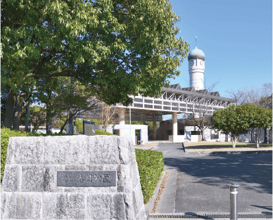 公園中央には、県花の梅を模した巨大なシンボル噴水がそびえ、美しい段差水路(カスケード)や散策路が整備されています。また、園内を一周する1.6kmの周回コースは、距離標識が設置された人気のジョギング拠点となっており、日々多くの市民が汗を流しています。