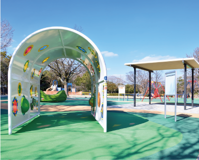 西側に位置し、芝生広場や児童コーナー、スケートパークなどが集まる多目的エリアです。拠点となる「パークステーション」では、遊具の無料貸出やキッズルーム、売店、地域情報の提供などを行っており、家族連れが快適に過ごせるサービスが充実しています。